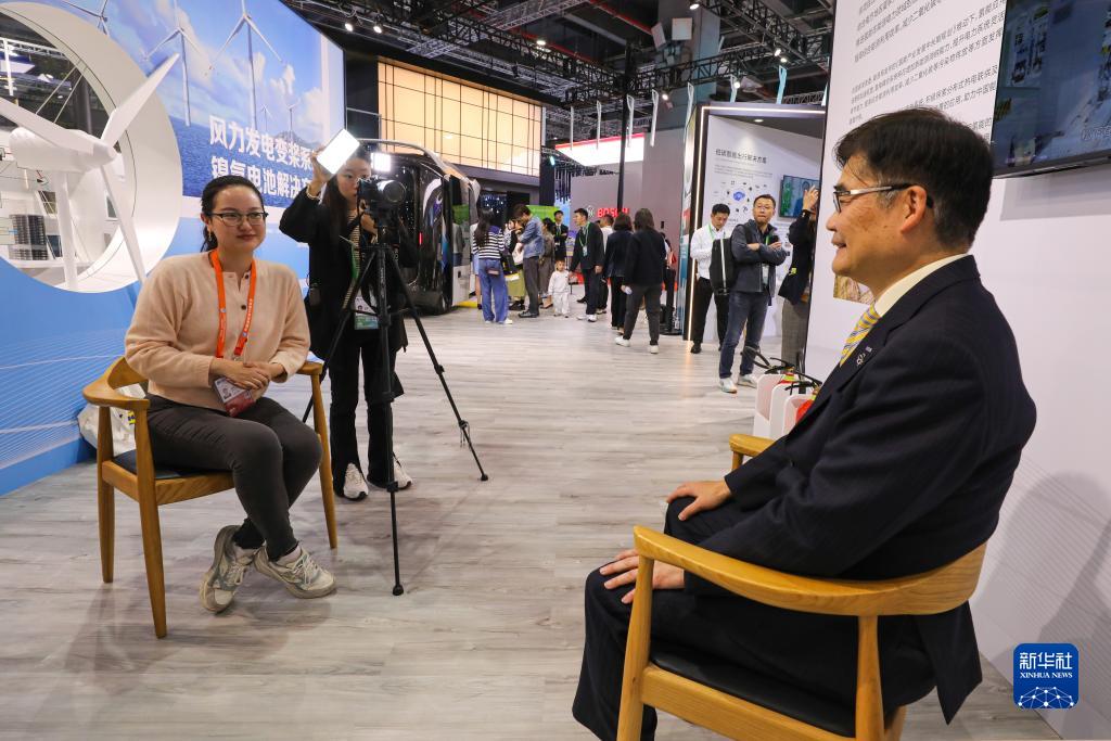 11月7日,新華社記者在第六屆進(jìn)博會(huì )消費品展區采訪(fǎng)松下控股株式會(huì )社全球副總裁本間哲朗。