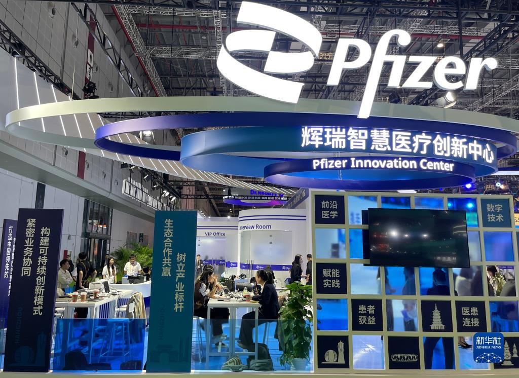11月8日,參觀(guān)者在第六屆進(jìn)博會(huì )輝瑞展臺洽談。