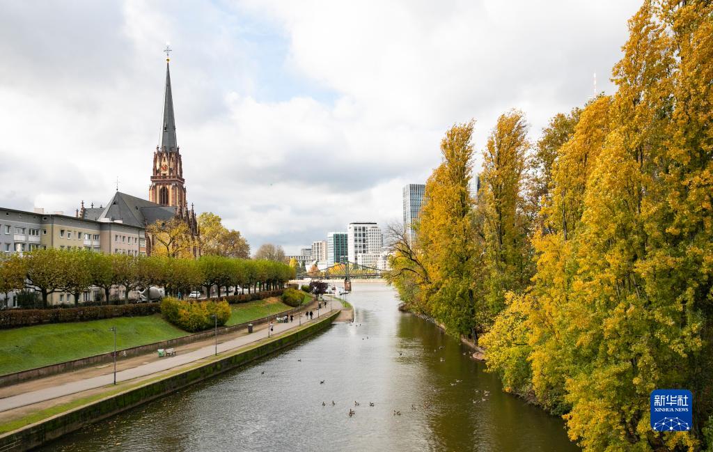 這是11月8日在德國法蘭克福拍攝的美因河畔秋日景象。