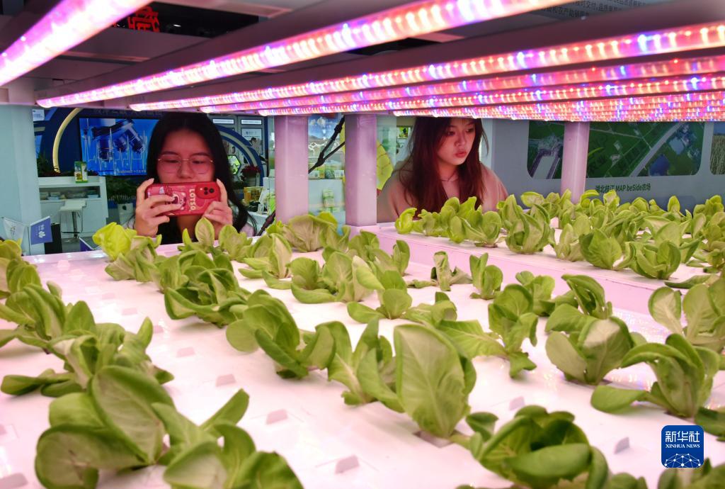 11月9日,觀(guān)眾在展會(huì )上拍攝“燈照蔬菜”。