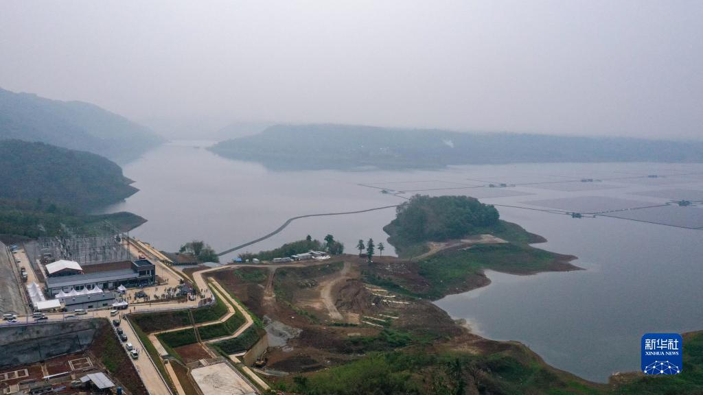 這是11月9日在印度尼西亞西爪哇省芝拉塔水庫拍攝的芝拉塔漂浮光伏項目升壓站和漂浮陣列(無(wú)人機照片)。