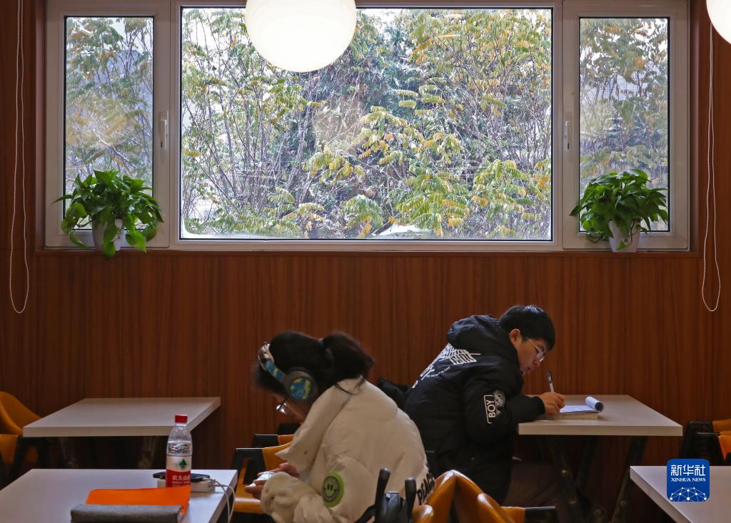 11月9日,學(xué)生在沈陽(yáng)農業(yè)大學(xué)三食堂學(xué)習、休憩。