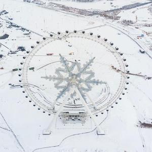 這是11月9日拍攝的位于哈爾濱冰雪大世界園區內的雪花摩天輪(無(wú)人機照片)。