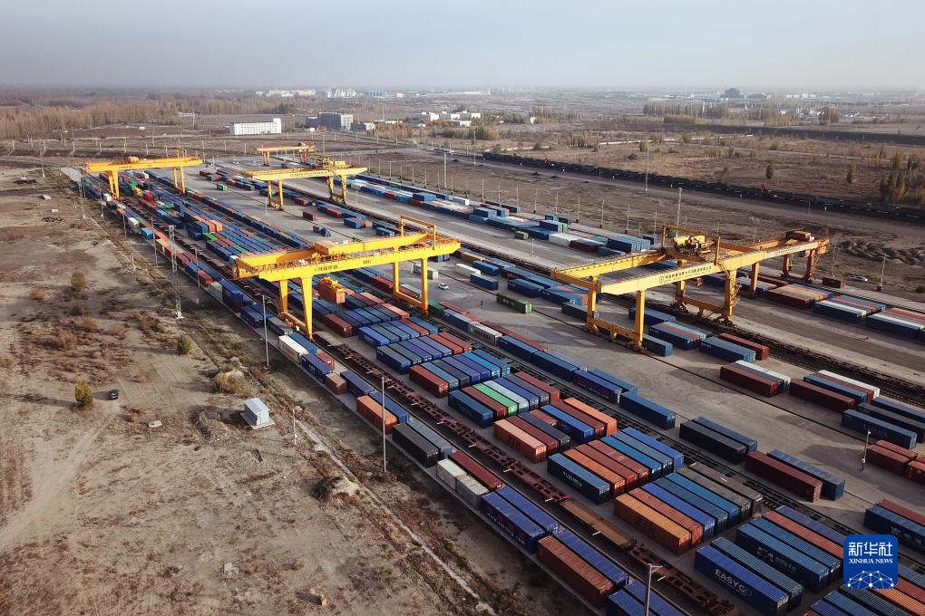 霍爾果斯鐵路口岸站(無(wú)人機照片,11月8日攝)。