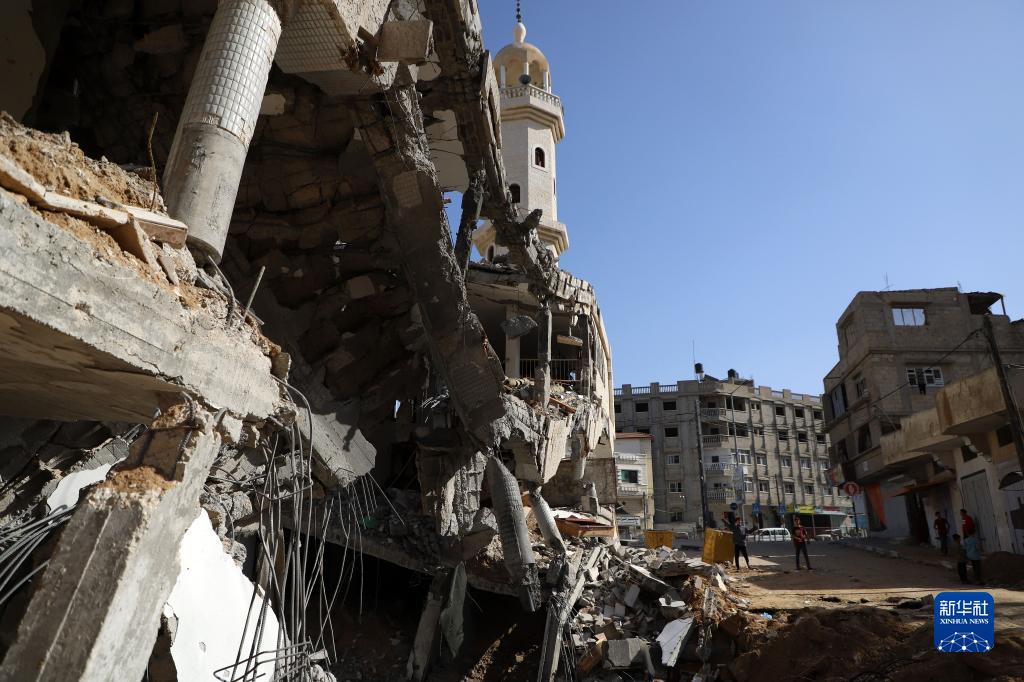 這是11月9日在加沙地帶南部城市汗尤尼斯拍攝的被損毀的建筑物。
