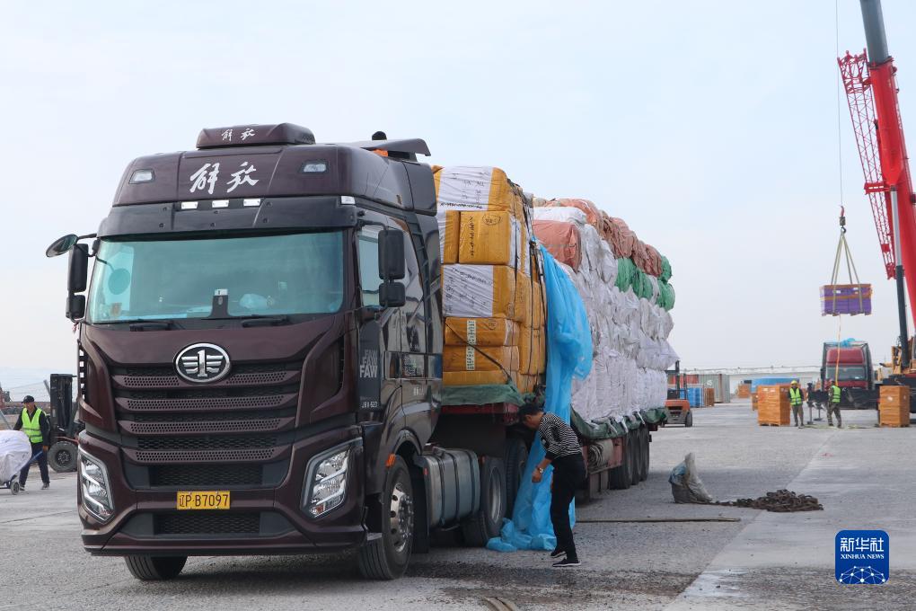 11月9日,司機在都拉塔口岸發(fā)展有限公司內裝載貨物。該公司為進(jìn)出口企業(yè)提供倉儲、物流等服務(wù)。
