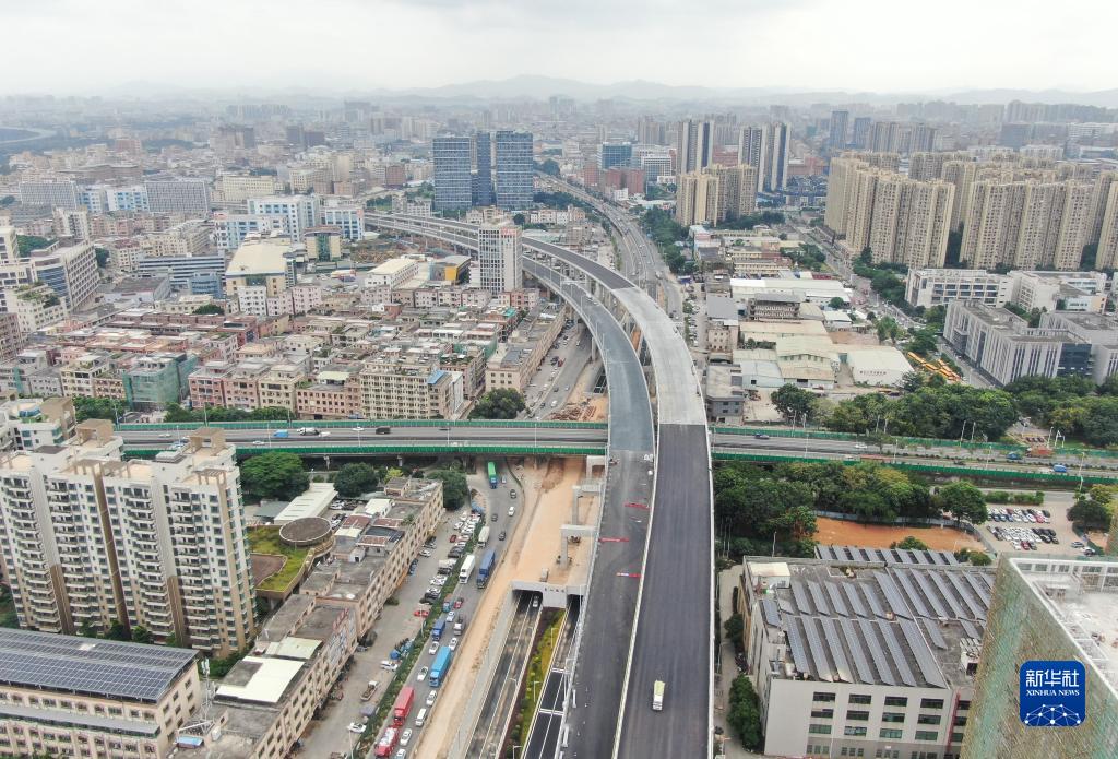 莞番高速橫跨東莞市多個(gè)鎮區和現有道路(11月9日攝,無(wú)人機照片)。