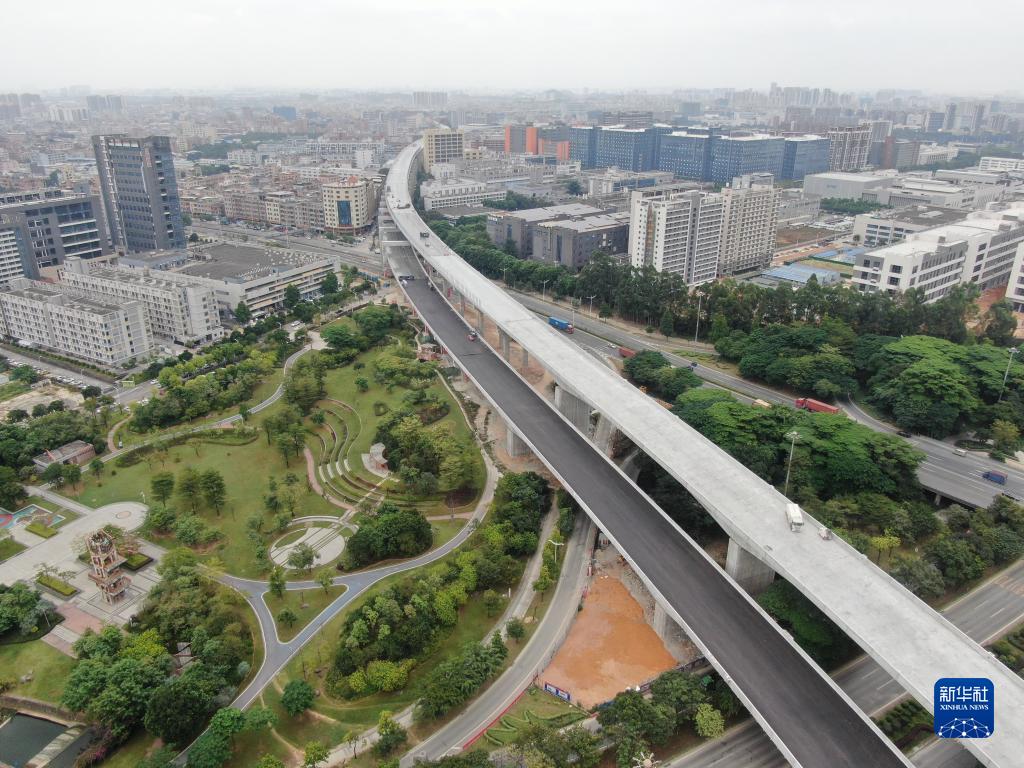 莞番高速貫穿東莞市多個(gè)鎮區,大量采用雙層橋設計,有效節約建設用地(11月9日攝,無(wú)人機照片)。