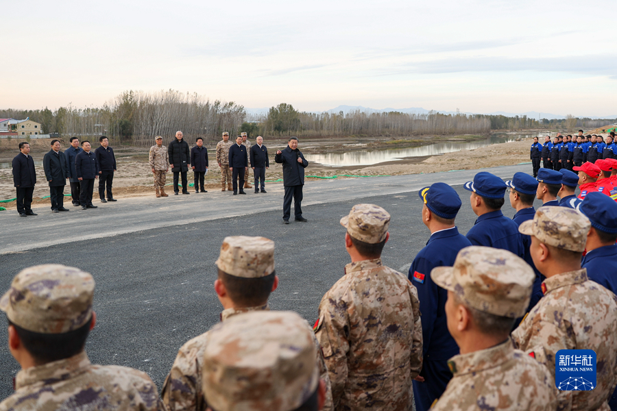 11月10日,中共中央總書(shū)記、國家主席、中央軍委主席習近平在北京、河北考察災后恢復重建工作。這是10日下午,習近平在河北保定涿州市白溝河治理工程(涿州段)考察時(shí),同水利工程建設人員和曾經(jīng)參加涿州抗洪救援的解放軍和武警部隊官兵、民兵預備役人員、消防救援隊伍等方面的代表親切交流。