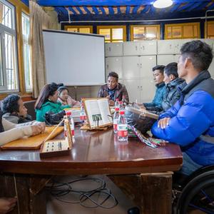 “雙十一”購物節期間,西藏拓崗文化傳播有限公司的直播間里氣氛火熱,工作人員忙著(zhù)通過(guò)網(wǎng)絡(luò )直播賣(mài)貨。這家公司由36歲的藏族肢體殘疾青年覺(jué)列創(chuàng )辦,大部分員工也是殘疾人,主要經(jīng)營(yíng)文具用品和民族樂(lè )器。直播購物的形式拓展了他們的銷(xiāo)售渠道,讓不方便行動(dòng)的殘疾人也能成為優(yōu)秀的銷(xiāo)售員。