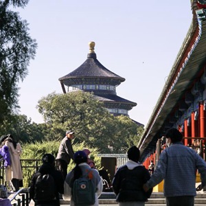11月11日,游人在天壇公園內休閑游覽。