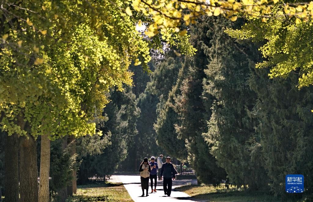 11月11日,游人在天壇公園內休閑游覽。