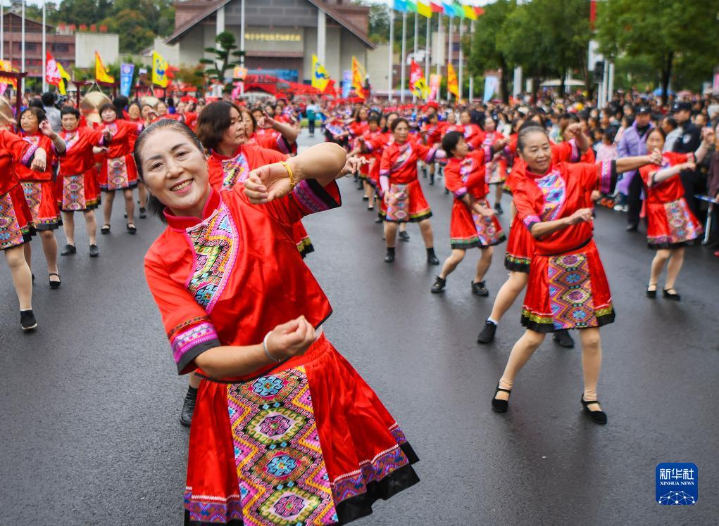 當日,湖北省恩施土家族苗族自治州來(lái)鳳縣舉辦第三屆土家擺手舞文化節,吸引來(lái)自貴州、湖南、湖北、重慶等省市的千余名擺手舞愛(ài)好者參加展演、巡游等活動(dòng),向市民和游客展示土家非遺擺手舞的獨特魅力。