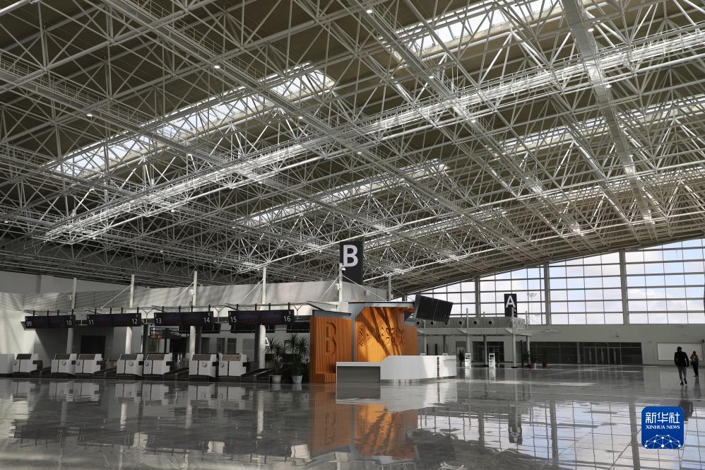 這是11月10日在安哥拉羅安達拍攝的安東尼奧·阿戈什蒂紐·內圖博士國際機場(chǎng)國內航站樓出發(fā)大廳。