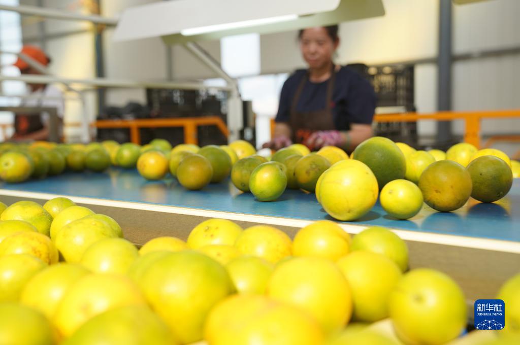 11月11日,在云南省新平縣戛灑鎮冰糖橙種植基地,村民在選果生產(chǎn)線(xiàn)上挑揀冰糖橙。