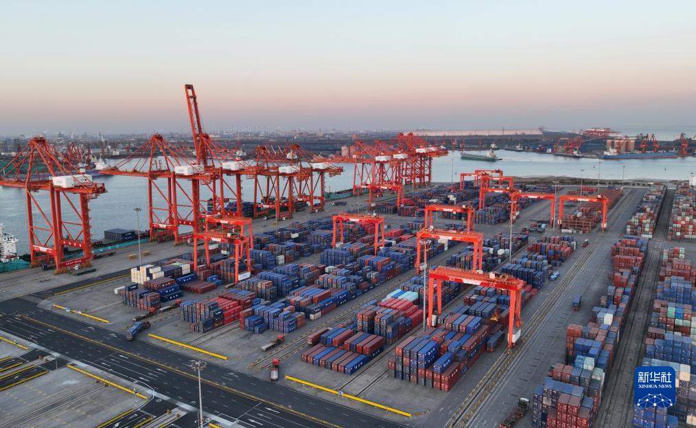11月11日拍攝的唐山港京唐港區集裝箱碼頭堆場(chǎng)(無(wú)人機照片)。