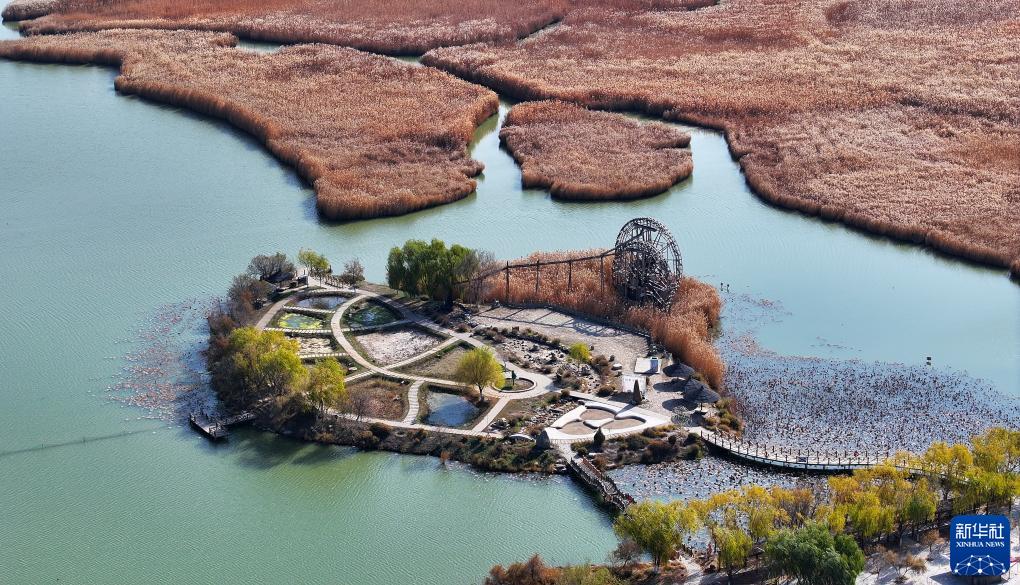 立冬節氣過(guò)后,位于寧夏銀川市興慶區的鳴翠湖國家濕地公園,金黃色的蘆葦隨風(fēng)飄蕩,各色林木五彩斑斕,構成獨特的初冬濕地景觀(guān)。