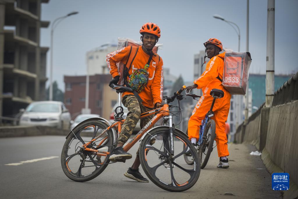 2022年7月19日,由中國企業(yè)參與投資的外賣(mài)公司beU delivery的外賣(mài)員在埃塞俄比亞首都亞的斯亞貝巴送餐。