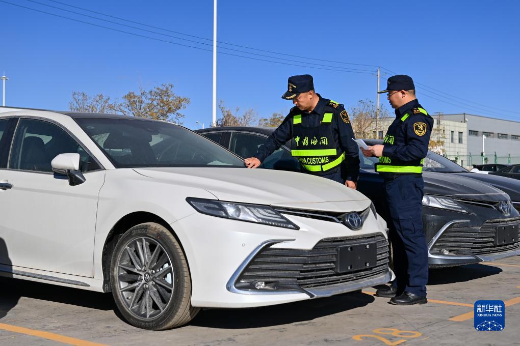 在新疆喀什綜合保稅區內的海關(guān)施封集中查驗作業(yè)區,海關(guān)關(guān)員在查驗出口商品車(chē)(11月4日攝)。