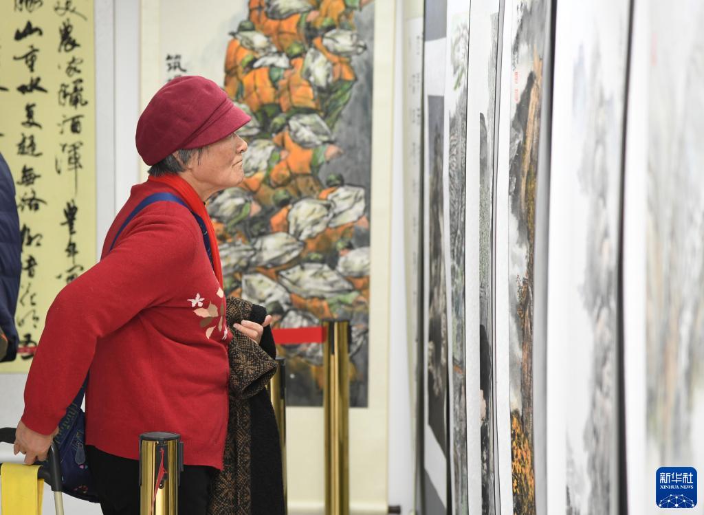 11月12日,觀(guān)眾參觀(guān)第十一屆“大美平谷·水墨周莊”書(shū)畫(huà)展。