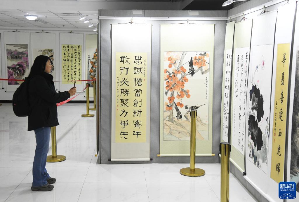 11月12日,觀(guān)眾參觀(guān)第十一屆“大美平谷·水墨周莊”書(shū)畫(huà)展。