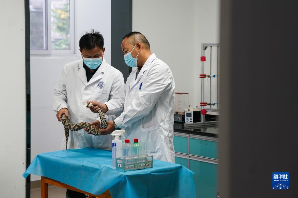 11月8日,在安徽省祁門(mén)蛇傷研究所,工作人員取五步蛇毒用于研究。