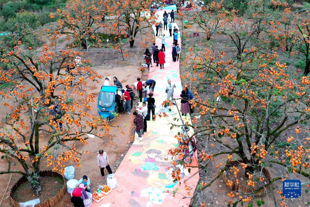 11月12日,游客在寧德市古田縣利洋村柿子園游玩(無(wú)人機照片)。
