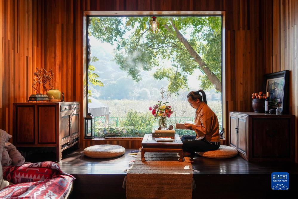 游客在江蘇省蘇州市通安鎮樹(shù)山村的一家民宿內休閑閱讀(11月2日攝)。