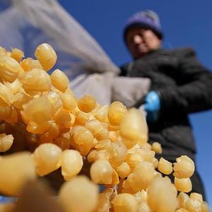 11月13日,秦皇島市昌黎縣團林鄉的扇貝養殖戶(hù)在將晾曬好的扇貝柱裝箱。