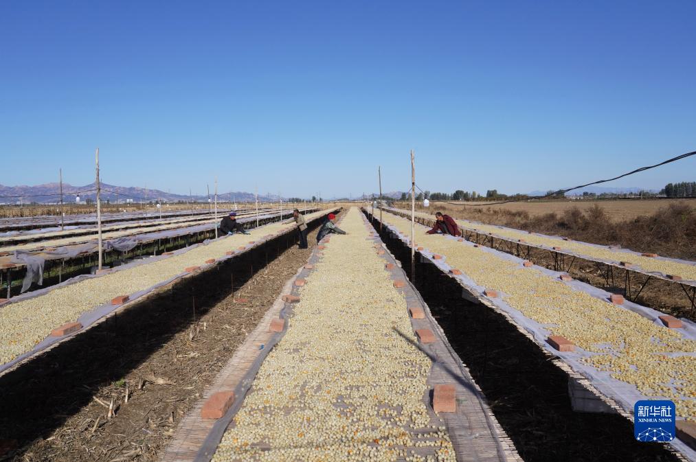 11月13日,秦皇島市昌黎縣團林鄉的扇貝養殖戶(hù)在晾曬收獲的扇貝柱。