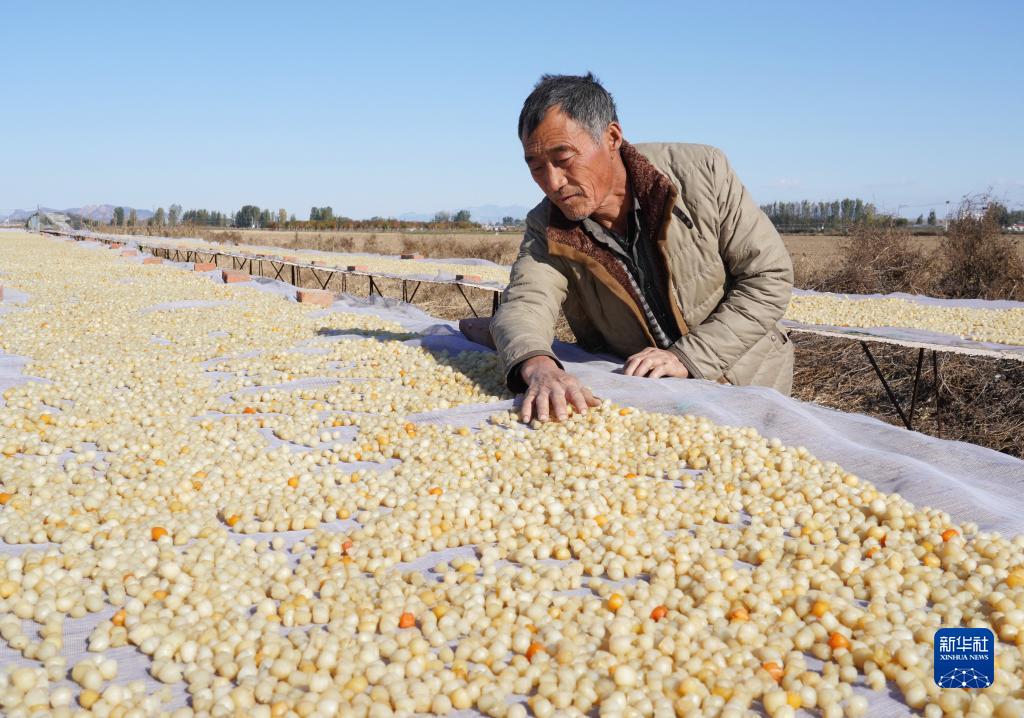 11月13日,秦皇島市昌黎縣團林鄉的扇貝養殖戶(hù)在晾曬收獲的扇貝柱。