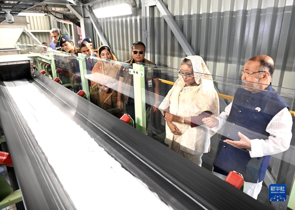 11月12日,孟加拉國總理謝赫·哈西娜(右二)在位于該國諾爾辛迪的古拉紹-布拉什化肥廠(chǎng)參觀(guān)。