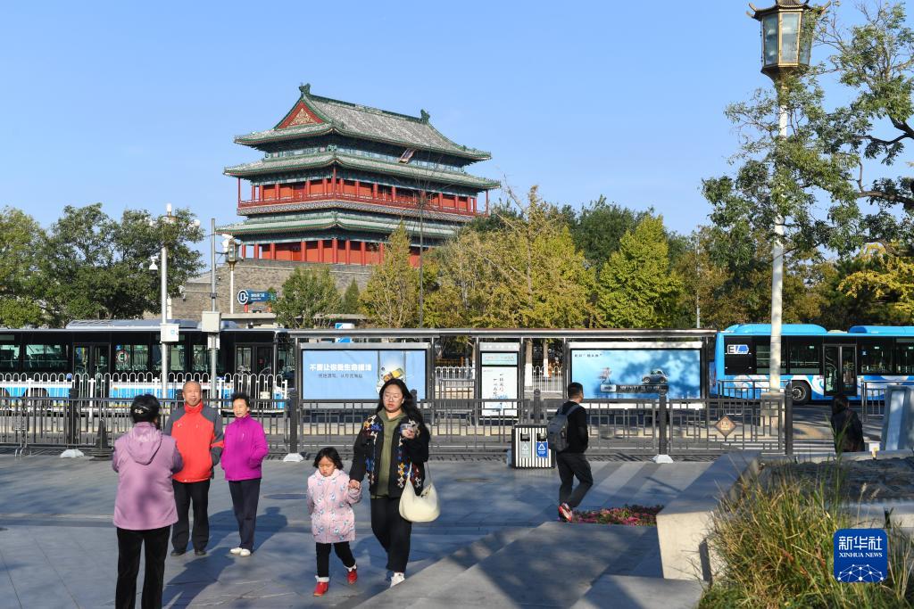 秋日北京,天高云淡。北京中軸線(xiàn)上的古老的文物建筑與色彩斑斕的秋葉相互映襯,美不勝收。