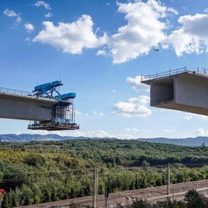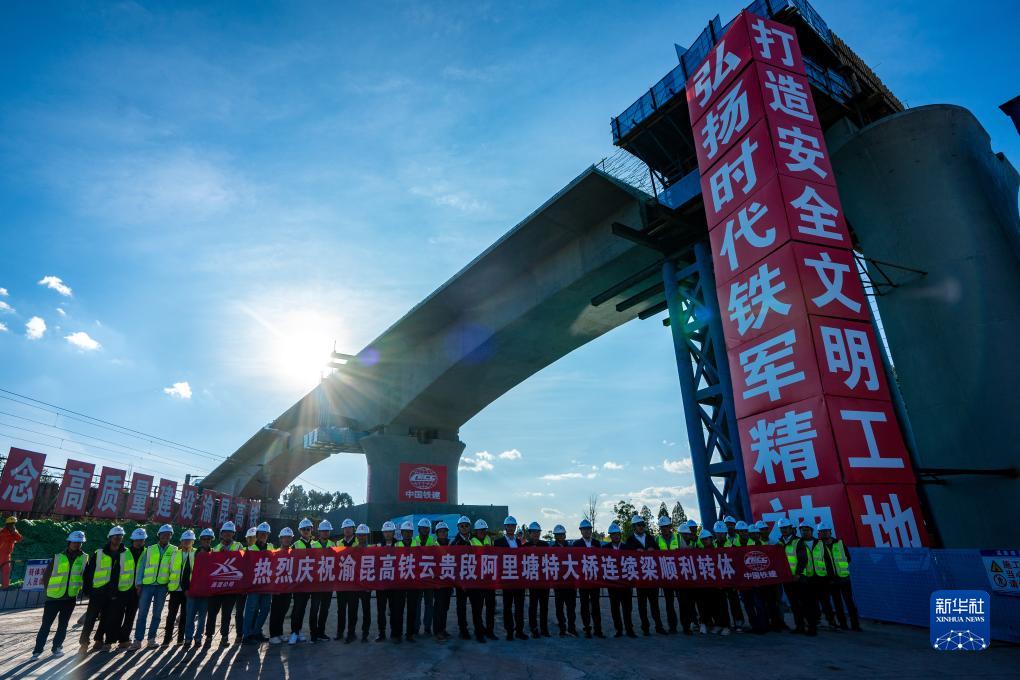 當日,歷經(jīng)1個(gè)多小時(shí)的空中轉體作業(yè),由中鐵四局承建的渝昆高鐵八家村跨滬昆鐵路特大橋、中鐵十六局集團承建的渝昆高鐵阿里塘特大橋連續梁同步成功轉體,在滬昆鐵路上方實(shí)現精準對接,標志著(zhù)渝昆高鐵橋梁建設取得新突破。