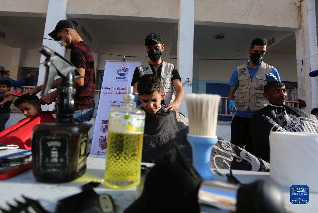 11月14日,在加沙地帶南部城市拉法,志愿者為流離失所的巴勒斯坦人理發(fā)。