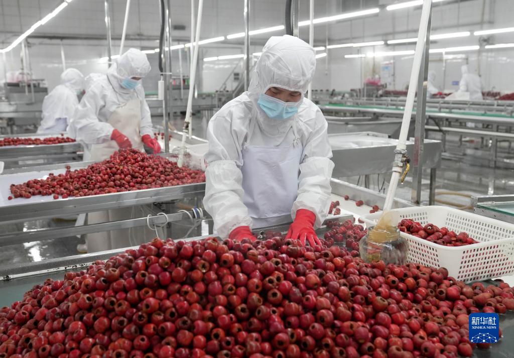 11月14日,工人在河北省遵化市一家食品企業(yè)的山楂罐頭生產(chǎn)車(chē)間工作。