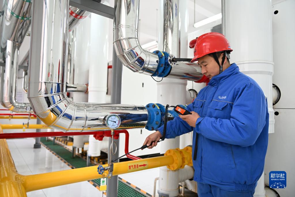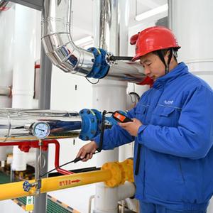 11月15日,唐山港能投智慧能源有限公司工作人員在唐山市路南區一處供熱站內檢查燃氣管道密封性。