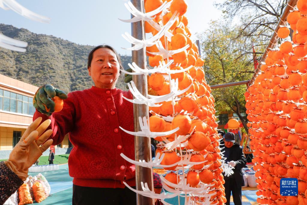 11月14日,在舟曲縣立節鎮杰迪村,村民在晾曬柿子。