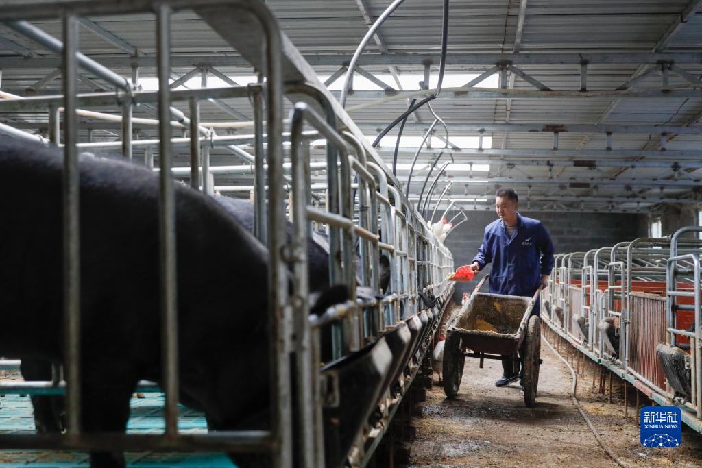 11月15日,在舟曲縣峰迭鎮狼岔壩村,村民在喂黑土豬。
