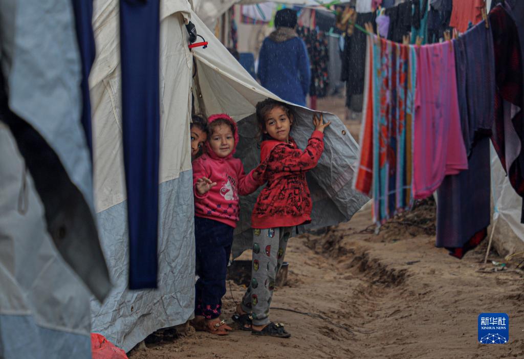 這是11月15日在加沙地帶南部城市汗尤尼斯一處臨時(shí)營(yíng)地拍攝的巴勒斯坦兒童。