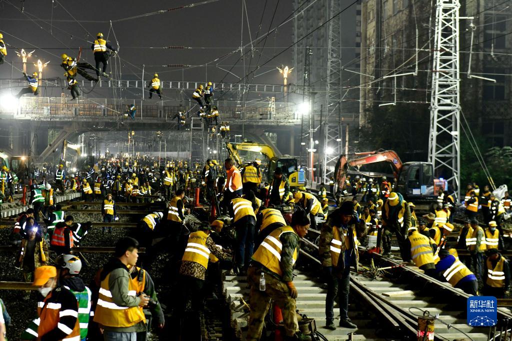 11月16日凌晨,在濟南火車(chē)站,由中鐵十局承建的濟(南)鄭(州)高鐵山東段引入濟南樞紐濟南站站改工程順利完成。作為濟鄭高鐵的控制性工程,本次施工需要在7個(gè)半小時(shí)內,工務(wù)、電務(wù)、電牽等多專(zhuān)業(yè)同步作業(yè),完成線(xiàn)路撥接、大機搗固、信號設備倒接啟用、接觸網(wǎng)改造等多項站改任務(wù)。