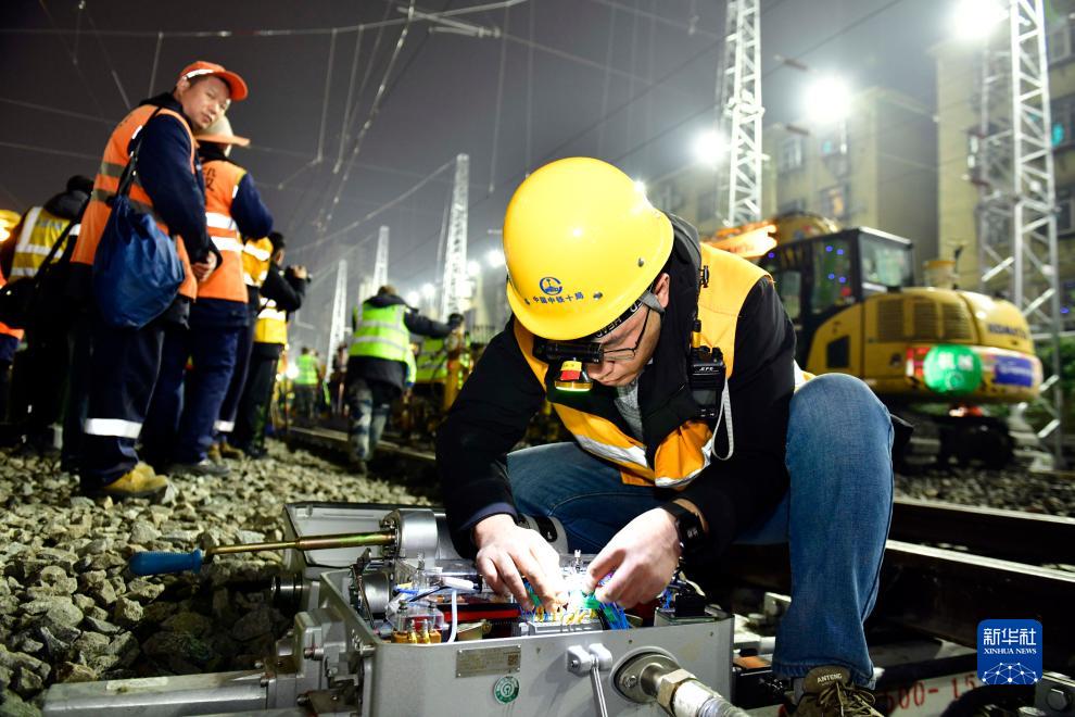 11月15日夜間,在濟南火車(chē)站,中鐵十局的工作人員正在對濟鄭高鐵引入濟南站進(jìn)行信號專(zhuān)業(yè)改造作業(yè)。