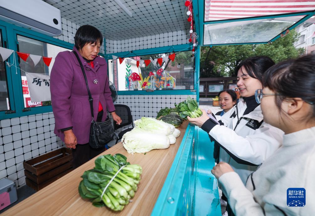 11月16日,嘉興市南湖區東柵街道新南社區的愛(ài)心蔬菜點(diǎn)工作人員在銷(xiāo)售蔬菜,所得收入用來(lái)充實(shí)社區愛(ài)心慈善基金。