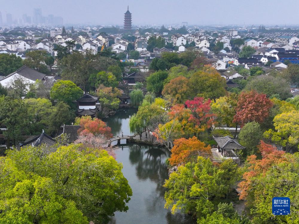 這是11月16日無(wú)人機拍攝的蘇州拙政園。