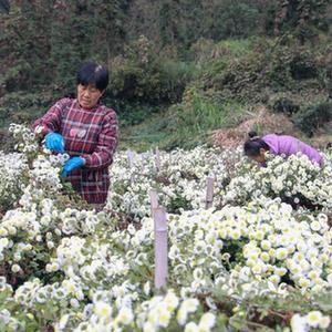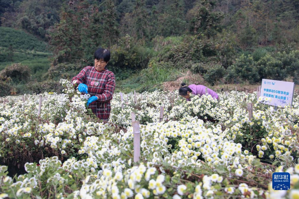 11月16日,村民在歙縣深渡鎮定潭村黃山貢菊智慧農業(yè)示范基地采摘。