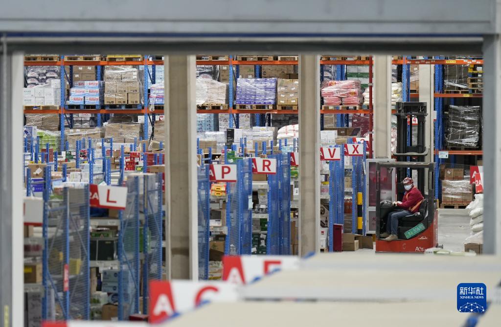 11月16日,在普洛斯唐山豐潤物流園,京東物流的叉車(chē)在運輸貨物。