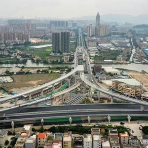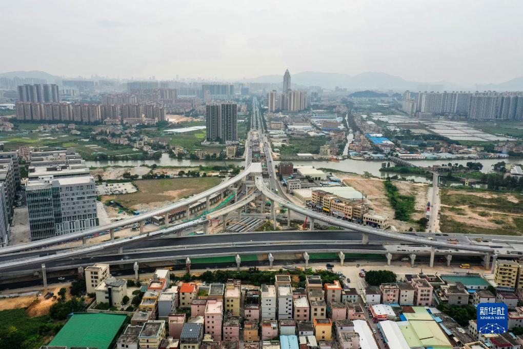 位于中山坦洲鎮的坦神北路龍塘互通(無(wú)人機照片,11月16日攝)。