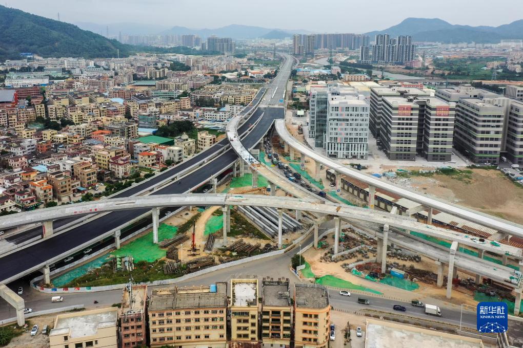 位于中山坦洲鎮的坦神北路龍塘互通(無(wú)人機照片,11月16日攝)。