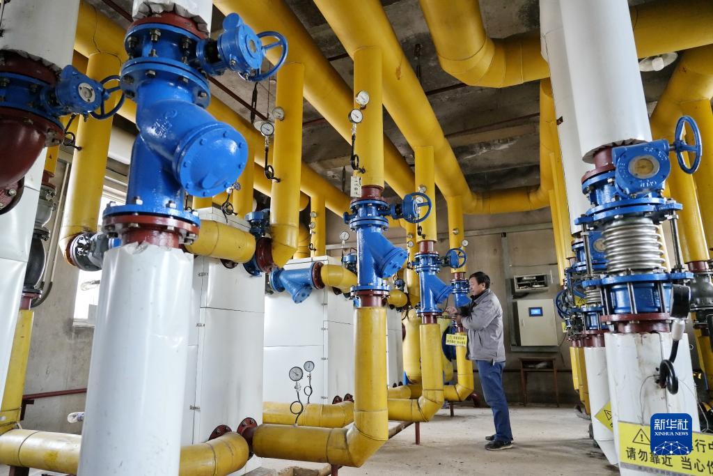 11月16日,唐山市豐潤區一家供熱企業(yè)工人在豐潤區第二中學(xué)供熱站內檢修供熱設備。