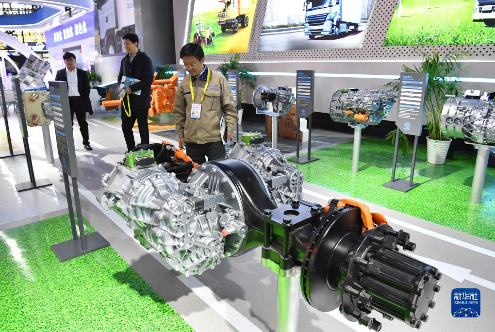 11月16日,觀(guān)眾在第七屆絲博會(huì )上參觀(guān)一款電驅橋總成。
